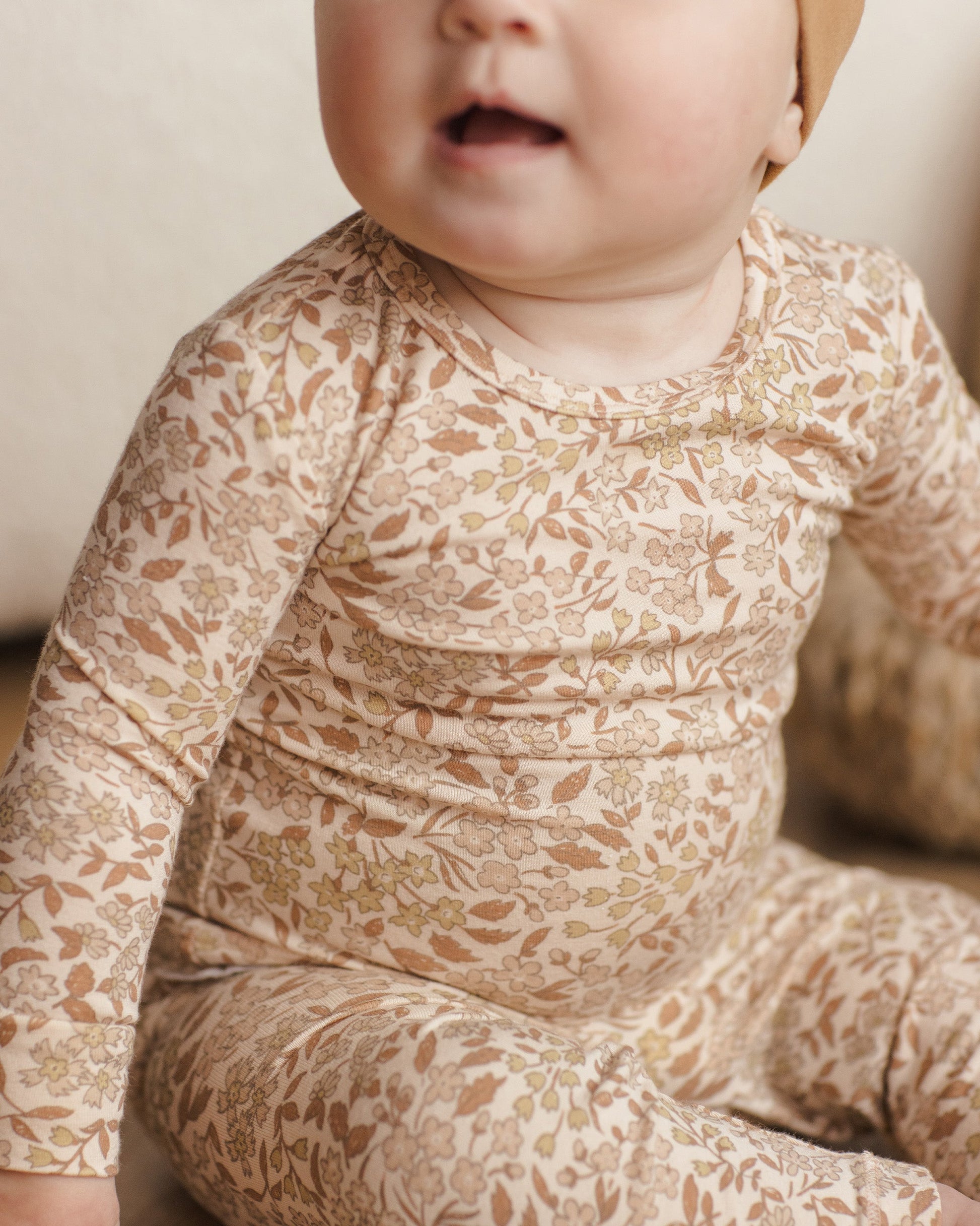Long sleeve tee and our leggings in our soft bamboo fabric. Slim fit with added stretch to grow with your baby. Featuring our 'harvest floral' all-over pattern.