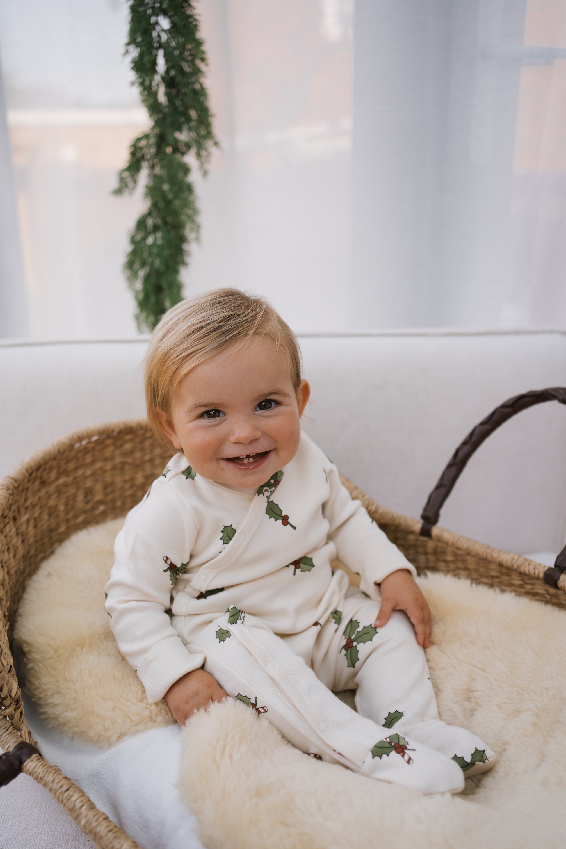 Get into the festive spirit with our Special Edition Christmas Holly sleepwear! Beautiful. roomy. and made of 100% natural organic soft jersey (no blends of fibers here). this footed suit will be a great choice for cuddles and afternoon naps. and will bring joy and happiness to bedtime.
